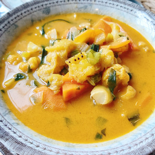 Curried Cauliflower Soup- With Plantain, Patchoi & Carrots